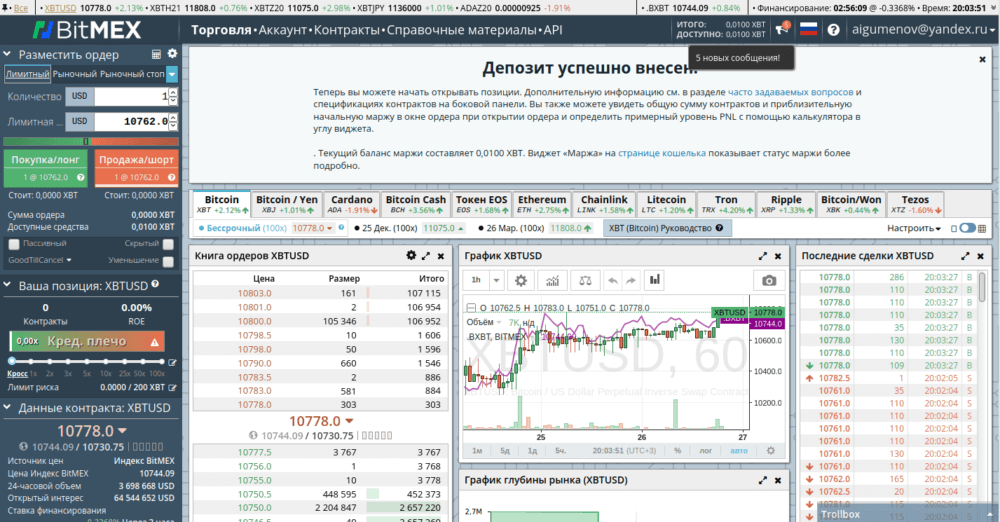 Владельцу демо-счета доступны такие инструменты, как биржевой стакан, окно истории проведенных сделок, диаграммы глубины, технические инструменты и многие другие возможности. Окно торгового терминала биржи коренным образом отлично от терминалов на других биржах, в том числе Форекс и фондовой. Поэтому изучение технических основ работы с новой платформой обязательно для каждого вновь пришедшего игрока.