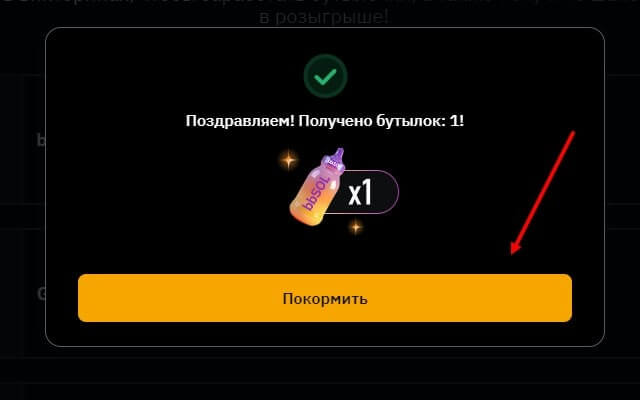 После прохождения тестирования и получения бутылочки нажмите на кнопку “покормить”.