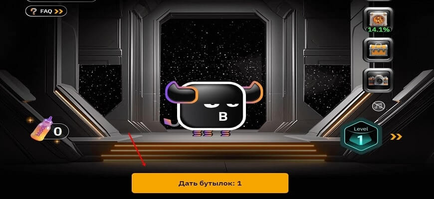 - Кормить питомца, давая ему бутылочки и повышая уровень своего персонажа на экране. Чтобы дать бутылочку, надо в нижней части страницы нажать на кнопку “Дать бутылок”.