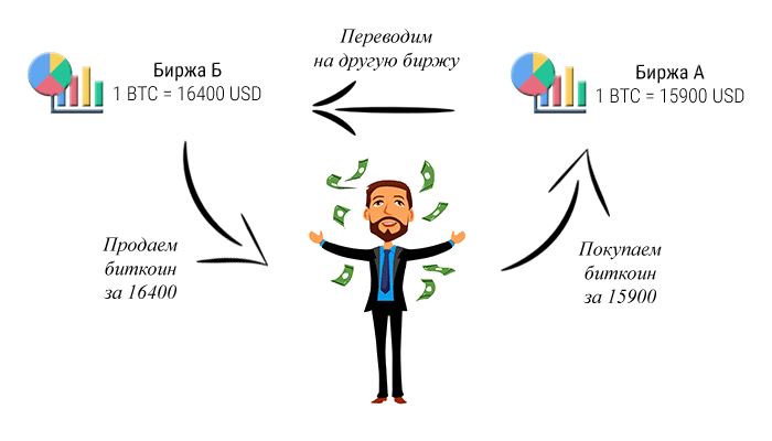 Как уже было сказано выше, арбитраж криптовалют — это покупка и продажа любых цифровых активов по разной стоимости в рамках разных или одной биржи. Например, если вы покупаете Биткоин за 25000$ на одном сайте, а на другом сайте продаете уже за 35000$, используя P2P или любые другие системы.