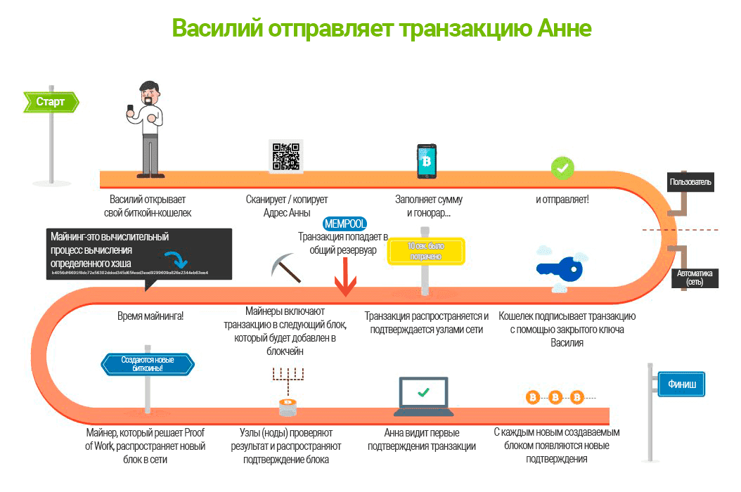 Все транзакции, проводимые в блокчейне перед отправкой должны пройти процесс подтверждения в блоке с помощью специального оборудования, применяемое майнерами. По этой причине все транзакционные платежи могут обрабатываться около 10 – 15 минут. Чтобы транзакция была завершенной, она должна быть подтвержденной и проверенной.