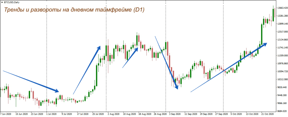 - долгосрочные: день (D1), неделя (W1), месяц (MN).