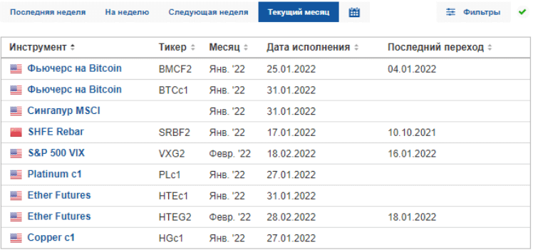 В спецификации каждого такого контракта дериватива всегда указывается его период действия, дата и время экспирации. Как правило, в биржевой торговле фьючерсами существуют специальные календари, где можно узнать дату истечения очередного контракта.