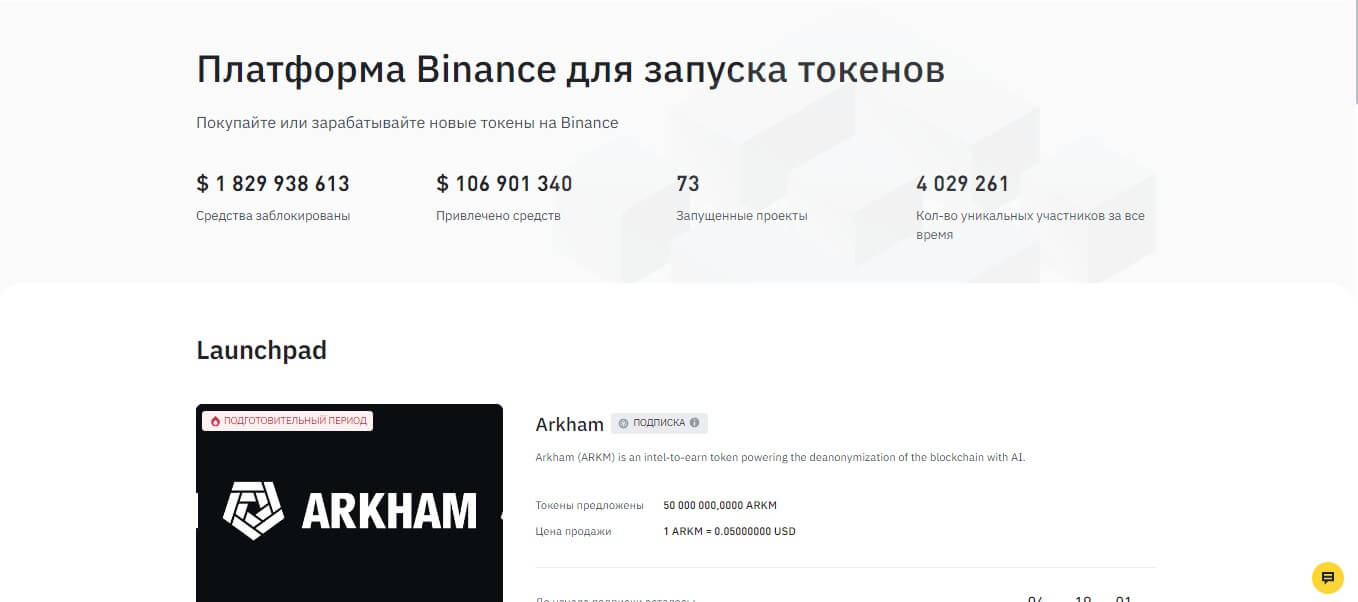 Binance Launchpad – проект, позволяющий запустить криптовалютные проекты, которые в будущем торгуются на площадке Binance. Участие происходит по формату подписки. Тем самым, пользователь, обладающий BNB токенами может в любой момент выделить на это определенную сумму, чтобы приобрести свежие токены, однако имеется некоторые лимит, связанный с приобретением активов, который получает любой из участников.