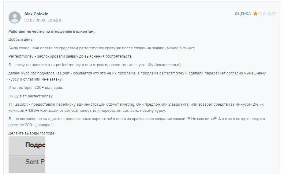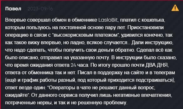Негативное мнение об обменнике Laslobit: реальные отзывы