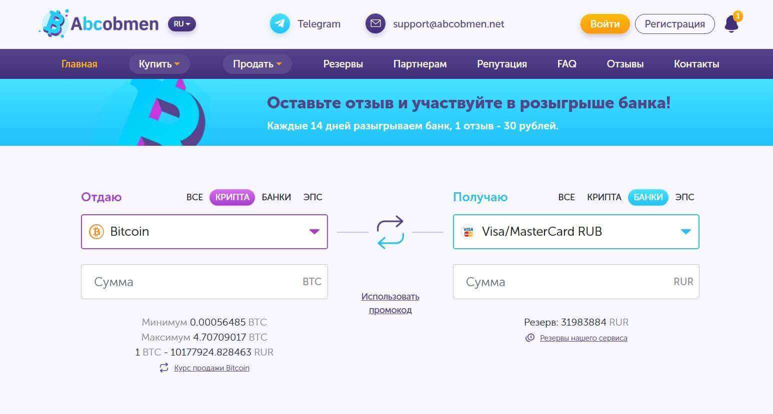 Abcobmen представляет собой платформу, которая позволяет обменивать криптовалюты, наряду с предложениями по обмену фиата, что делает тем самым универсальным сервисом для широкого круга пользователей.