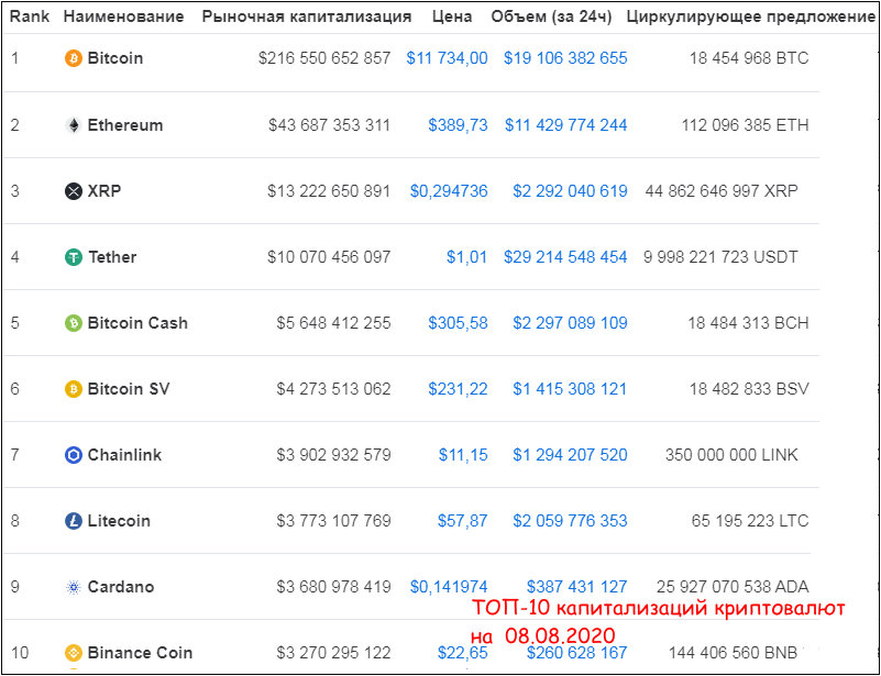 Общая стоимость криптовалюты в других цифровых деньгах или реальных (фиатных) деньгах. Рассчитывается как «количество монет в обороте Х текущий курс». Здесь важно понимать, что расчет идет только по монетам находящимся в свободном (биржевом) обороте и не учитывает те, которые фактически находятся на кошельках в «пассивном» состоянии. Например, как минимум, 10 000 BTC находятся на кошельке, который связан с автором Bitcoin Сатошей Накамото и никогда не использовались для платежей и переводом. Именно такие «запасы» могут использоваться для быстрого смещения котировок, а значит и капитализации, в пользу крупных игроков.