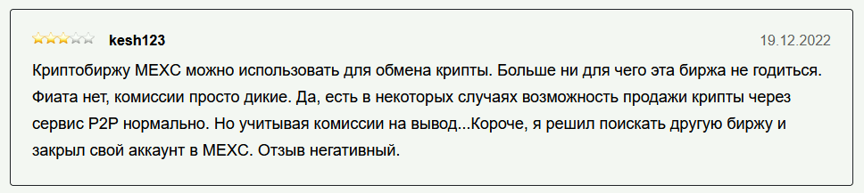 Указанные выше данные о высоких комиссиях подтверждает другой клиент биржи. Он рекомендует использовать площадку только для обмена криптовалют между собой. Это полезный совет для тех, кто хочет иметь оперативную возможность получения нужных токенов. Потому что ввиду отсутствия фиата и излишне высоких комиссионных найти другое применение площадке рядовому клиенту вряд ли удастся. Даже если найти выгодный курс на P2P, высокие сборы при выводе сводят на нет все возможные преимущества.