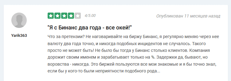 Простоту и выгоду обмена валют на площадке упоминает следующий автор. В своем фидбеке он пишет, что работает здесь на протяжении двух лет и за это время не встречал ни единой проблемы или задержки при проведении соответствующих транзакций.