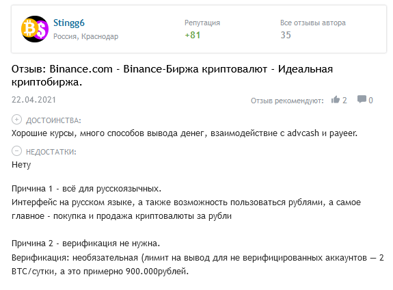 По этим причинам обзор отзывов о Binance.com начнем с обзора от тех, для кого работа здесь в новинку.