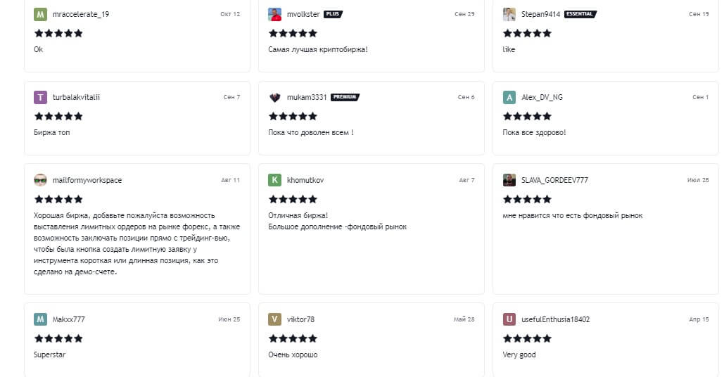 Как можно понять по нашей статье, истории людей разнятся от положительных до негативных, причем, если говорить про рынок в России, то биржа относится к клиентам наиболее лояльнее. В целом же можно доверять компании, т.к. основная масса мнения от пользователей являются положительными, что говорит статистика и лишь небольшой процент клиентов остался недовольным.