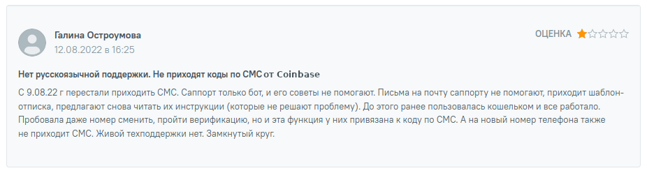 Доставляет оптимизма тот факт, что все упоминания о пропаже средств и внезапной блокировке относятся к прошлым периодам и после 2020-2021 годов практически не встречаются. Однако с середины 2022 года русскоязычные пользователи и трейдеры, находящиеся в некоторых странах СНГ, начали испытывать трудности при взаимодействии с платформой. Причина тому довольно проста — введенные санкции со стороны иностранных государств, коснувшиеся Coinbase как площадку с международным регулированием и контролем.