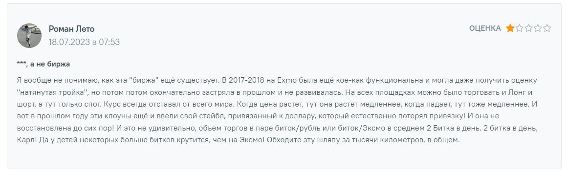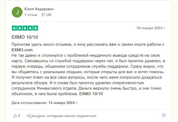 Судя по отзывам 2023 – 2024 года биржа Экзмо не считается разводом. Имеется ряд негативных отзывов, однако в основном биржа обладает положительными, что позволяет сделать вывод о надежности площадки по торговле криптовалютами.