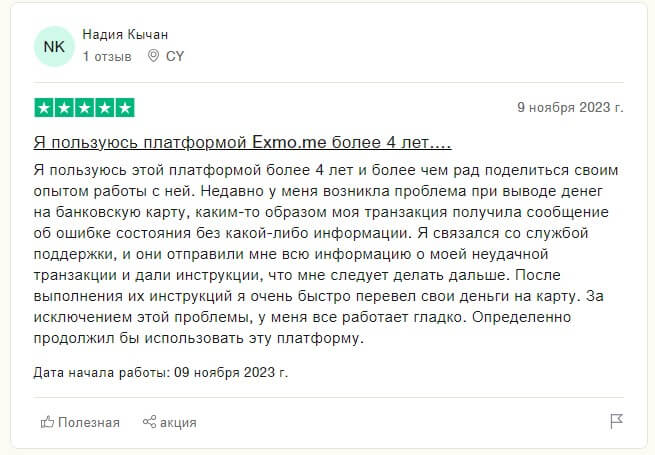 Клиенты также высоко оценивают качество поддержки и обслуживания со стороны Exmo. Биржа предоставляет возможность получить помощь по всем вопросам, связанным с использованием данной платформой, через круглосуточную онлайн-поддержку. Отзывы отмечают оперативность и профессионализм сотрудников службы поддержки, которые всегда готовы помочь решить любые возникшие проблемы.