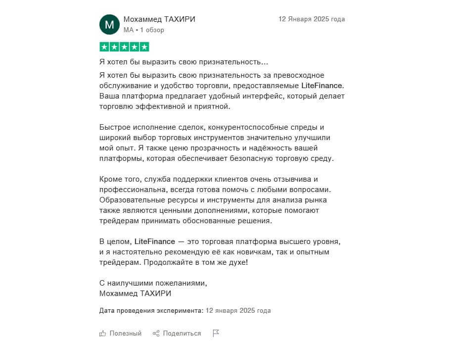 - Положительные реальные отзывы 2025 года о брокере LiteFinance от реальных людей