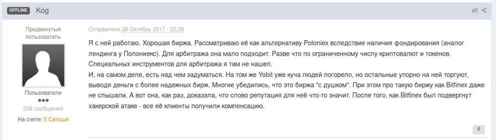 Очередной клиент биржи говорит о том, что это отличная альтернатива одному из старейших и крупнейших биржевых игроков Полоникс. Все благодаря опции пассивного заработка. Он утверждает, что для совершения арбитражных операций эта система не лучший выбор, а вот в плане безопасности альтернатив Битфинекс не найти.