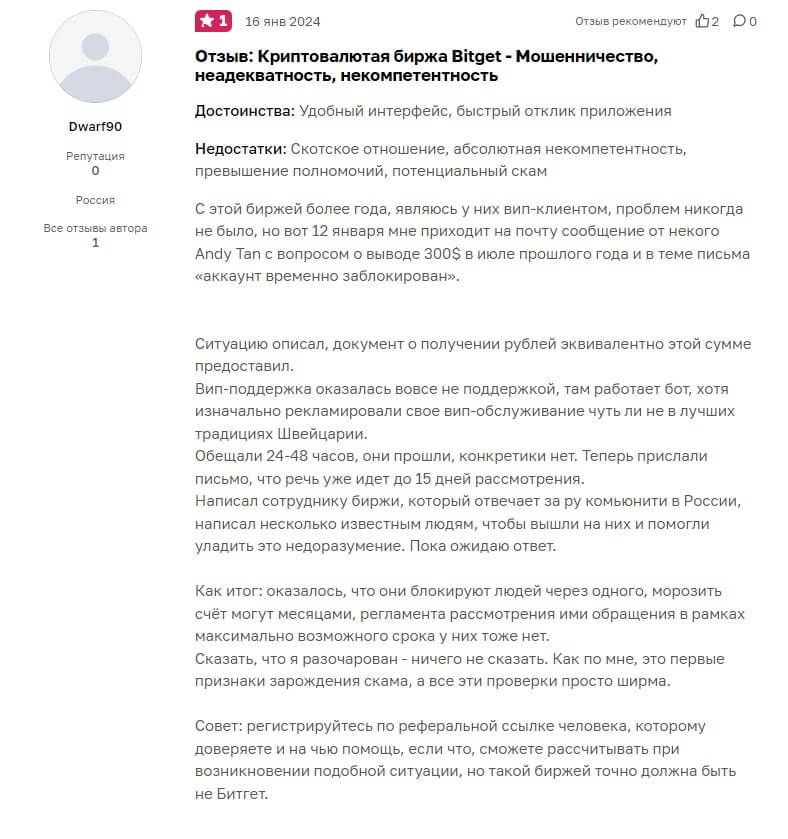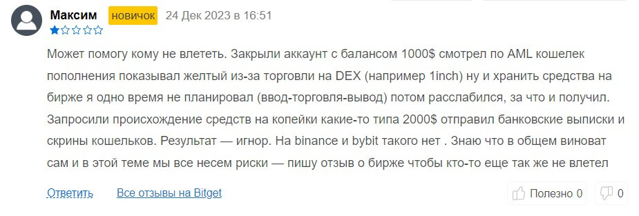 А один из пользователей рассказал такую историю при взаимодействии с BitGet и выводе средств: