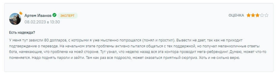 - Проблемы со средствами. Определенное количество жалоб связано с задержками или проблемами с доступом к личным средствам. В некоторых случаях для завершения транзакции требуется больше времени, чем обещает биржа.