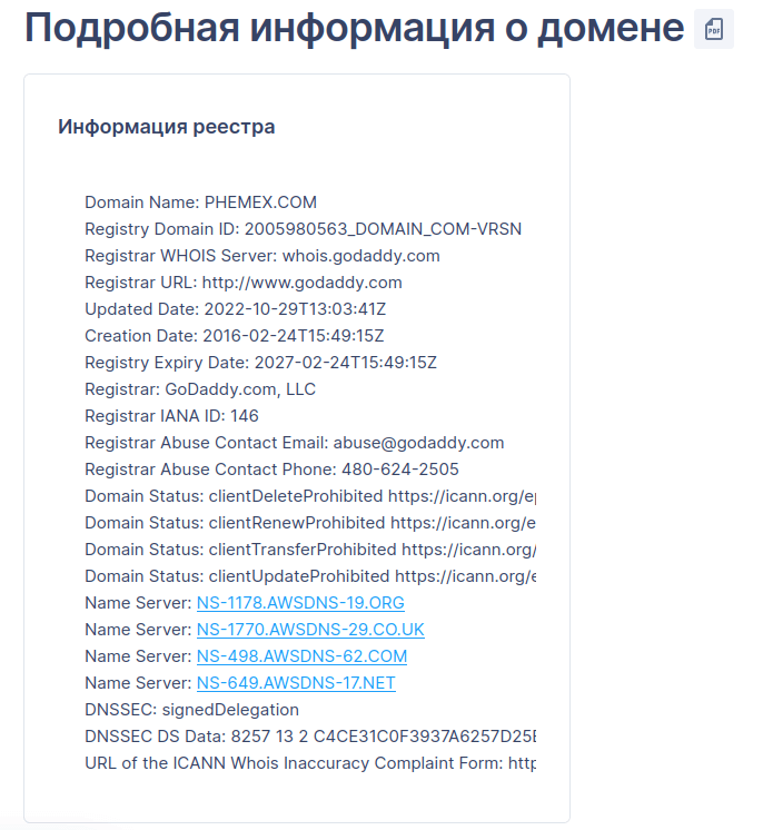 Официальный сайт Phemex.com был создан в 2016 году, основателями биржи стали финансовые сотрудники такой именитой банковской структуры, как Morgan Stanley. На момент публикации материала (конец 2022 года) период окончания регистрации домена приходился на 2027 год, что говорит о больших планах руководства по развитию платформы и отсутствии признаков скам-однодневки.