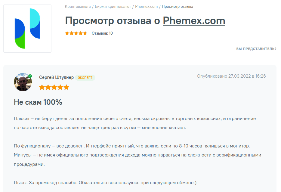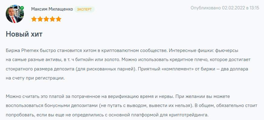 В этом материале будут рассмотрены существующие отзывы Phemex, биржи, претендующей на звание самого технологичного участника крипторынка. Вся предложенная информация взята из официальных тематических форумов, прошла предварительную модерацию на подлинность и отражает существующее положение дел. В статье приводятся свежие отзывы 2023 года, из которых можно получить достаточный для выбора биржи объем данных.