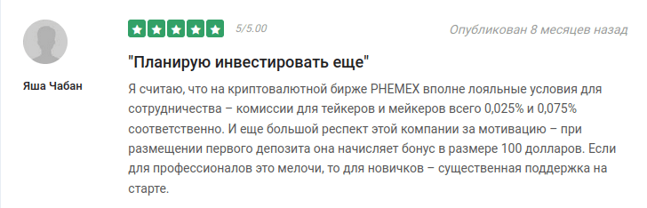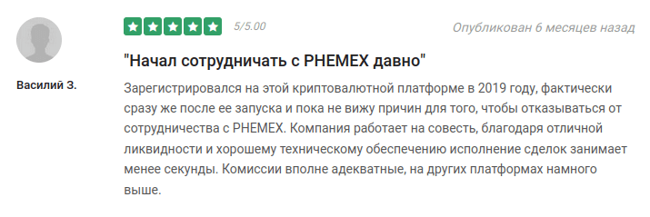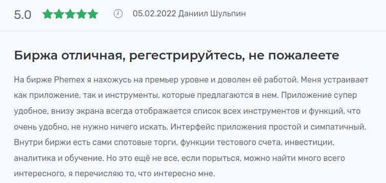 Формальные признаки говорят о компании как стабильном и надежном участнике рынка, а информацию о качестве предлагаемого набора услуг можно получить из отзывов Phemex реальных людей, которые будут рассмотрены далее.