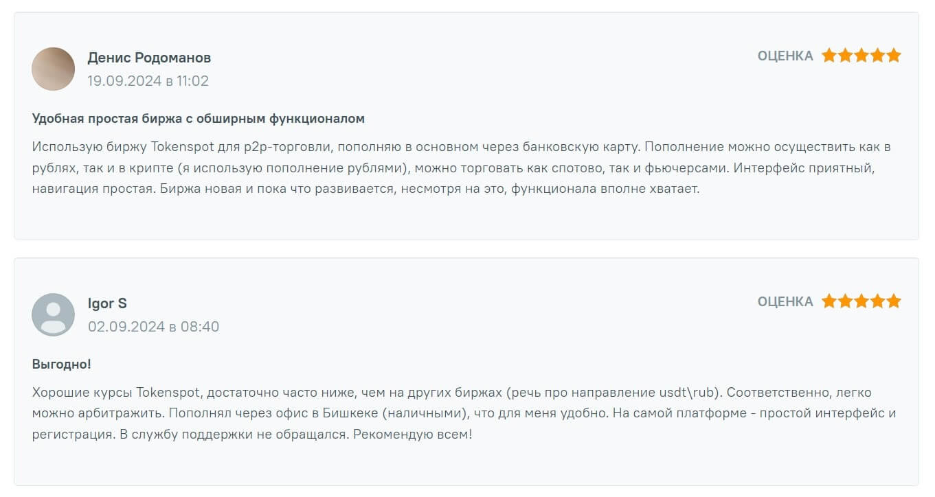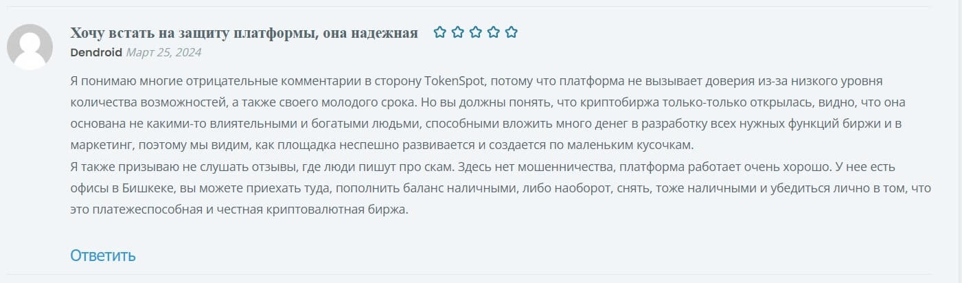 Положительные свежие отзывы клиентов о Tokenspot от реальных людей из России