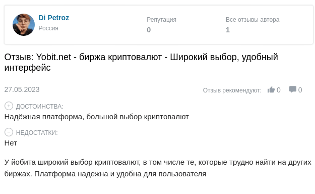 В одном из реальных отзывов о выводе средств можно узнать, как владельцу аккаунта на другой платформе пришлось потрудиться, чтобы получить запрошенные деньги. В Yobit подобных проблем не наблюдается.