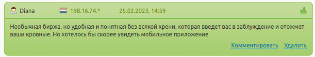 А когда в портфеле брокера появится мобильное приложение (просьбы об этом можно встретить во многих фидбеках, включая приводимый далее), площадку можно рассматривать как современную криптобиржу для повседневной работы в единственном числе.