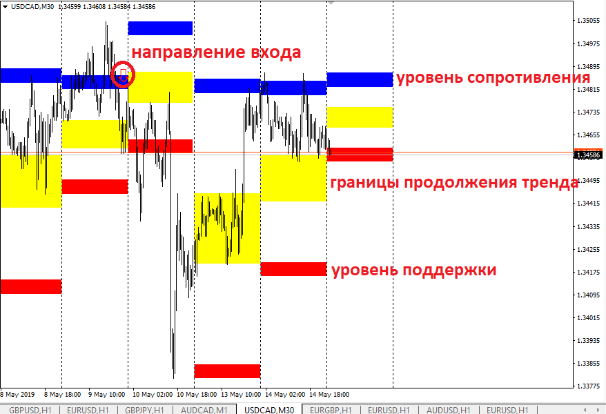 В основе методики — выявление надежных уровней поддержки и сопротивления, а также соответствующая реакция трейдера, выраженная в открытии и удержании сделки по определенным правилам. Здесь автоматизируются многие рутинные аналитические действия, что позволяет биржевику сохранять один из своих главных ресурсов — время. Остается только своевременное отслеживание подступа тренда к важным границам поддержки или сопротивления и отработка возникающих при этом паттернов.